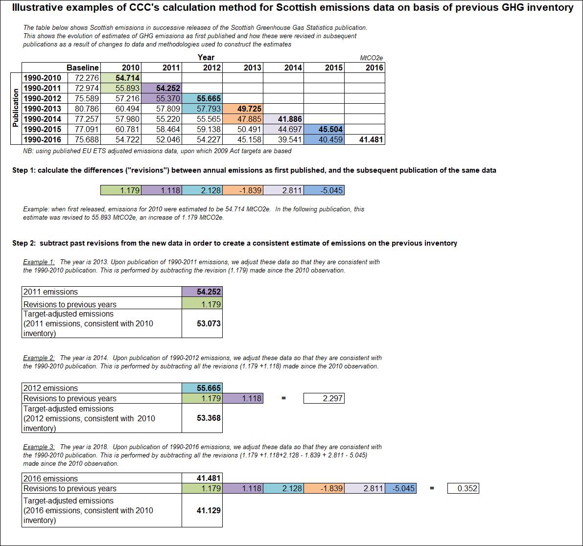 The Bill, as introduced, contained updated annual targets for the years 2017, 2018 and 2019, set as percentage reductions from baseline levels (rather than amounts of emissions) and based on actual (rather than adjusted) emissions, with levels as advised by the CCC. The rationale for including updated annual targets for these years in the Bill was to allow the transition from the reporting regime of the 2009 Act to the new one (established by the Bill) to occur as soon as possible. The inclusion of updated targets for years that have passed relates to the two year timescale for the availability of emissions statistics.