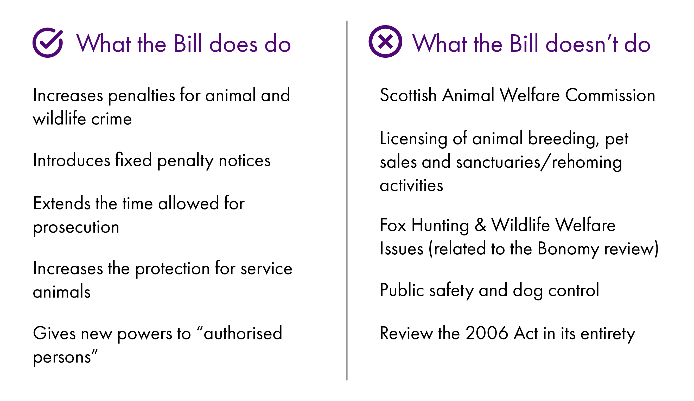 The objective of the Bill is to provide further protections for animals and wildlife in Scotland.