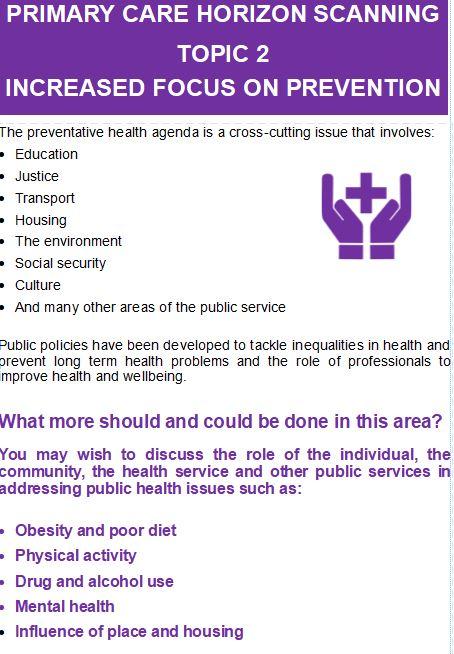 Public involvement in how primary care services are run or changed • What should primary care look like in the future