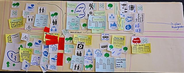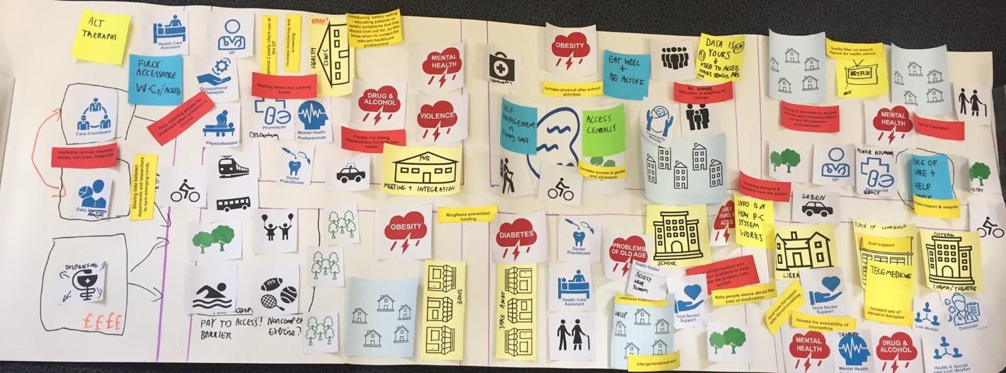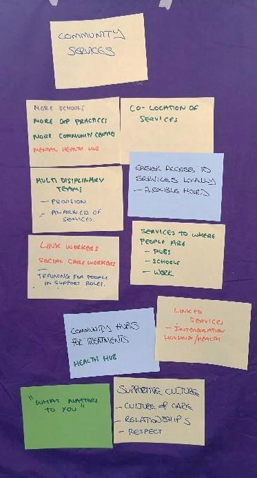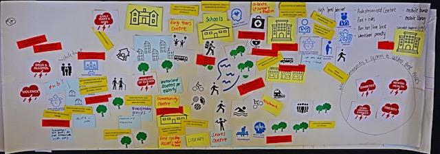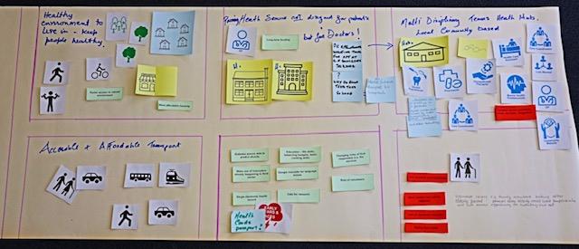 We joined the second meetings to observe and hear the views of the panels directly. Each panel completed a creative mapping exercise to think about how they would like future services to be designed to address the health and social needs in their communities.