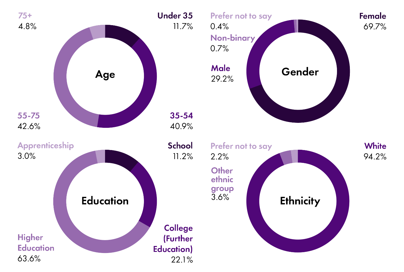 The survey was launched at the beginning of March and remained open until the end of April. In total we received 2,549 responses, mainly completed on-line although hard copy responses were received and are included in the above total. The survey was promoted through web and social media channels, with targeted work undertaken to try and ensure a wide demographic spread.