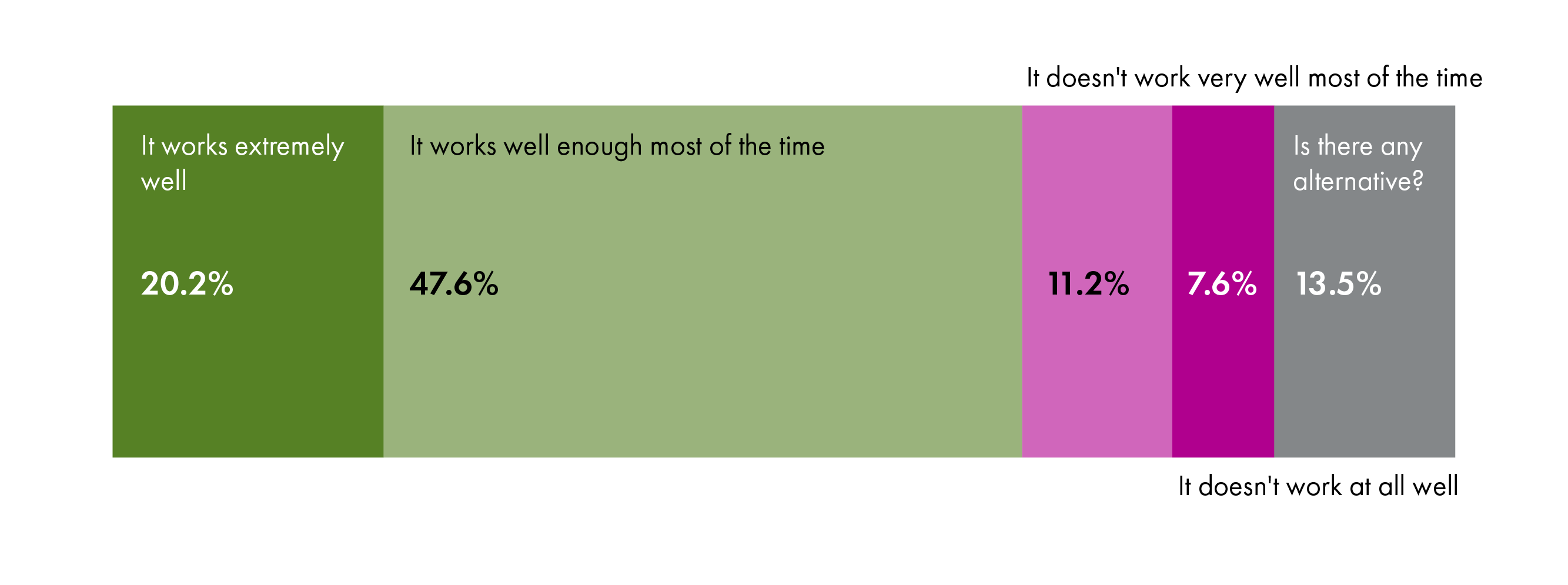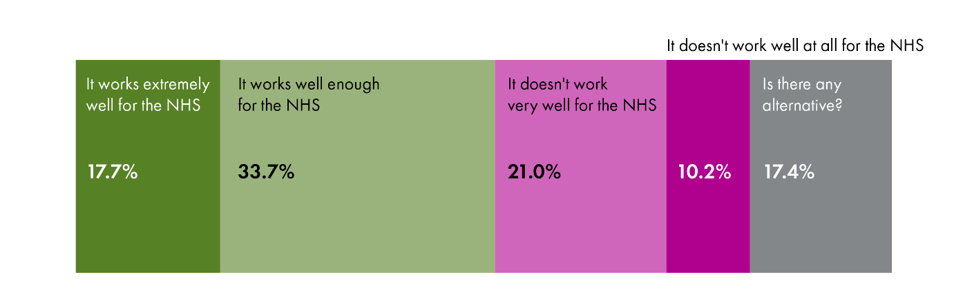 Survey questions were asked about the current model of funding GPs as independent contractors running their practices as small businesses. 79% indicated awareness of the model with 68% indicating it worked well or extremely well for them and 51% indicating it worked well or extremely well for the NHS. Panel members showed no interest in this aspect during their considerations.