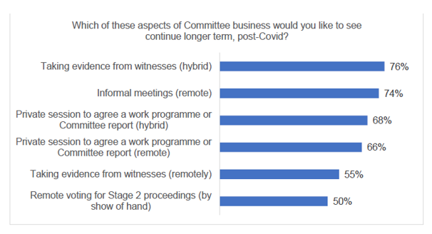 1. While the net results were positive, there was some frustration with issues such as not being in the same room as those that were giving evidence and the reduction of personal interaction between committee members and witnesses. There was also a feeling that committee meetings were more stilted and it was harder for Members to ask supplementary questions.
