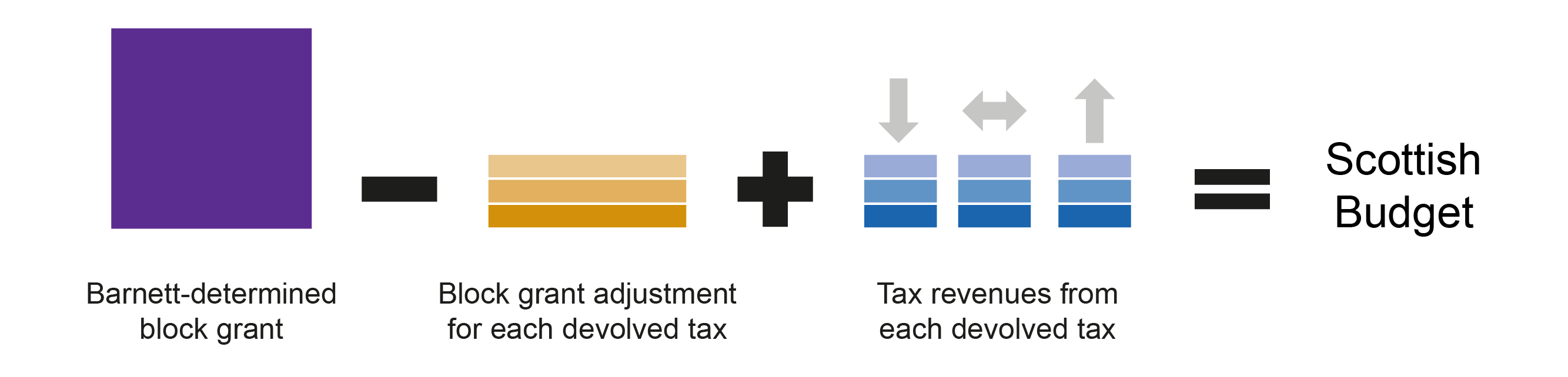 Under the terms of the Fiscal Framework 1agreed between the UK and Scottish Government to implement the Scotland Act 2016 powers, the size of the Scottish Budget is now determined by three elements (see figure 1).