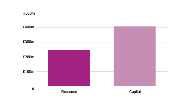 Figure 3 shows the real terms changes in Resource and Capital between 2017-18 and 2018-19. The Capital numbers include Financial Transactions and the £450m in proposed borrowing in 2018-19.