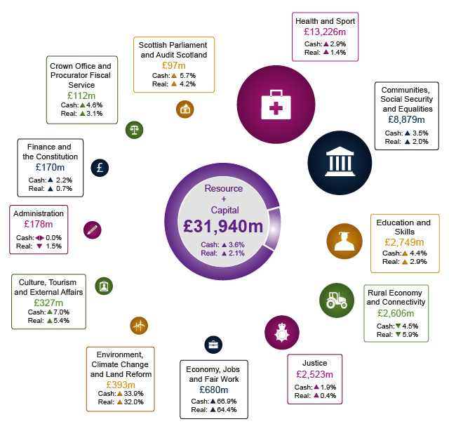 The only portfolios that are decreasing in real terms are Rural Economy and Connectivity, which falls by 5.9% and Administration which falls by 1.5%.