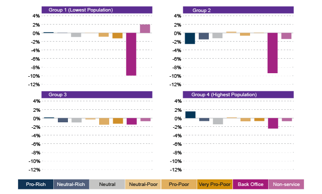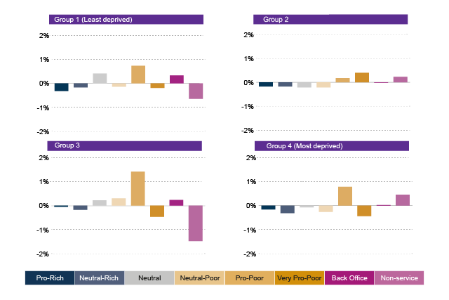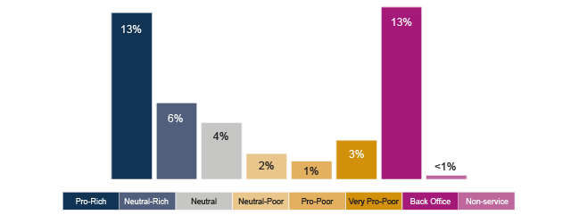 Eleven percent of spending is on Neutral services and only 2% of expenditure is on Pro-Rich services.