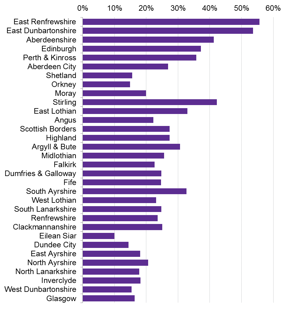 | East Dunbartonshire | 227.9 | 54.7 | 24% | 230.4 | 61.1 | 27% | 2% |