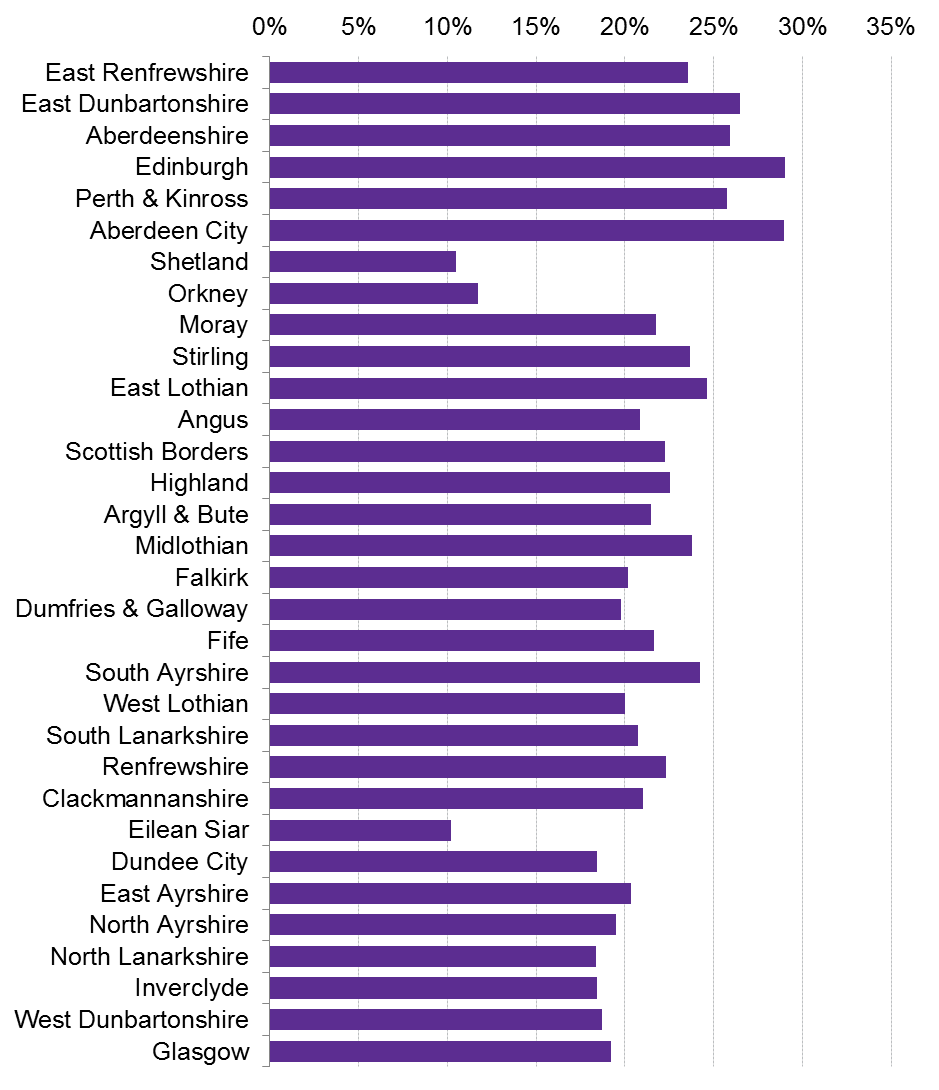 | East Renfrewshire | 214.4 | 45.6 | 21% | 217.4 | 51.2 | 24% | 2% |