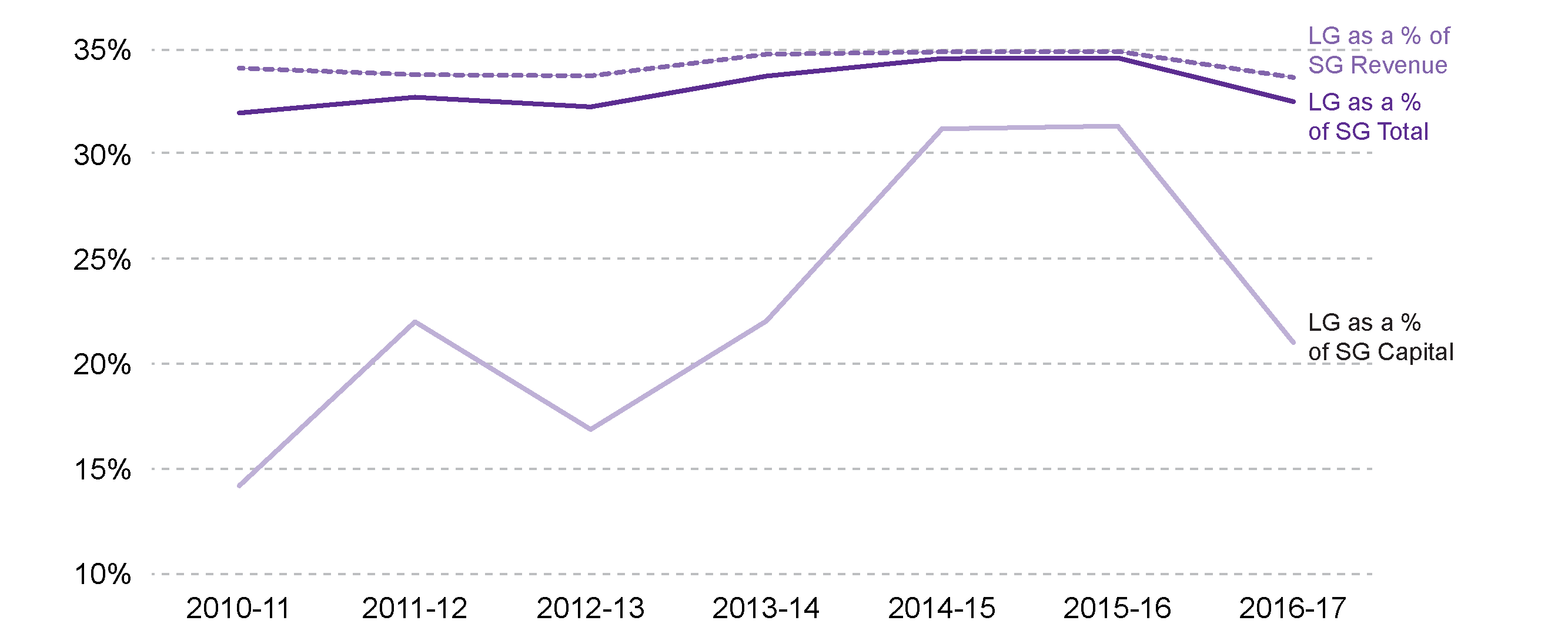 LG Finance Order figures suggest that this proportion may remain relatively stable between 2016-17 and 2017-18, however this can be traced to a sizeable increase in LG capital funding balancing out the fall in the LG revenue budget.