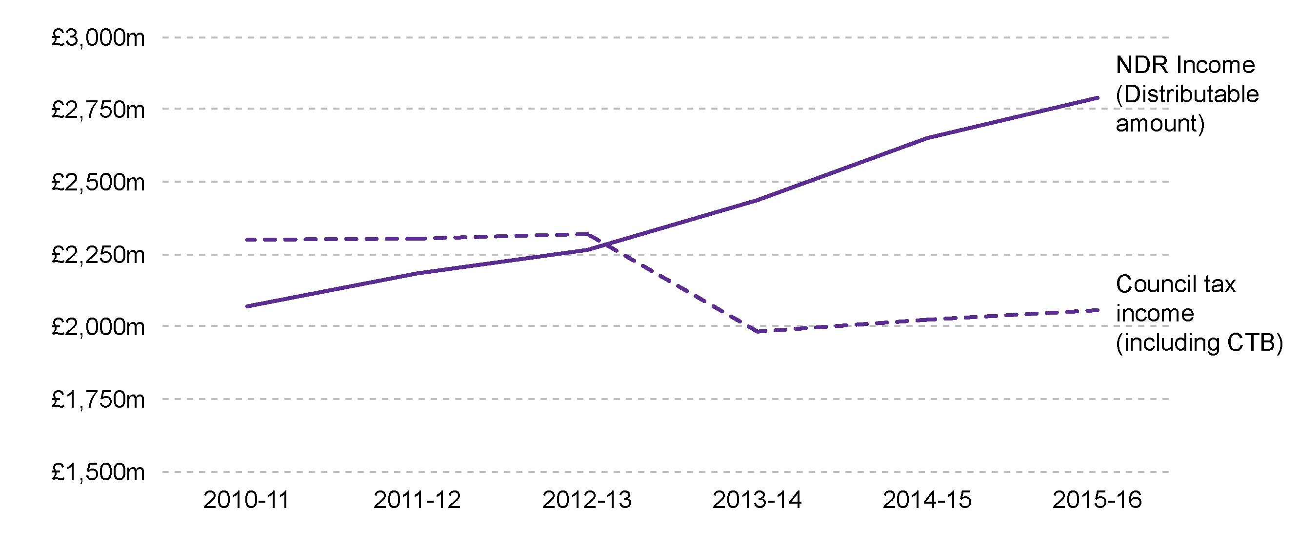 | Year | Council Tax income (excluding CTB) (£m) | Council Tax benefit subsidy (£m) | Council Tax income (including CTB) (£m) | NDR Income (Distributable amount) (£m) |