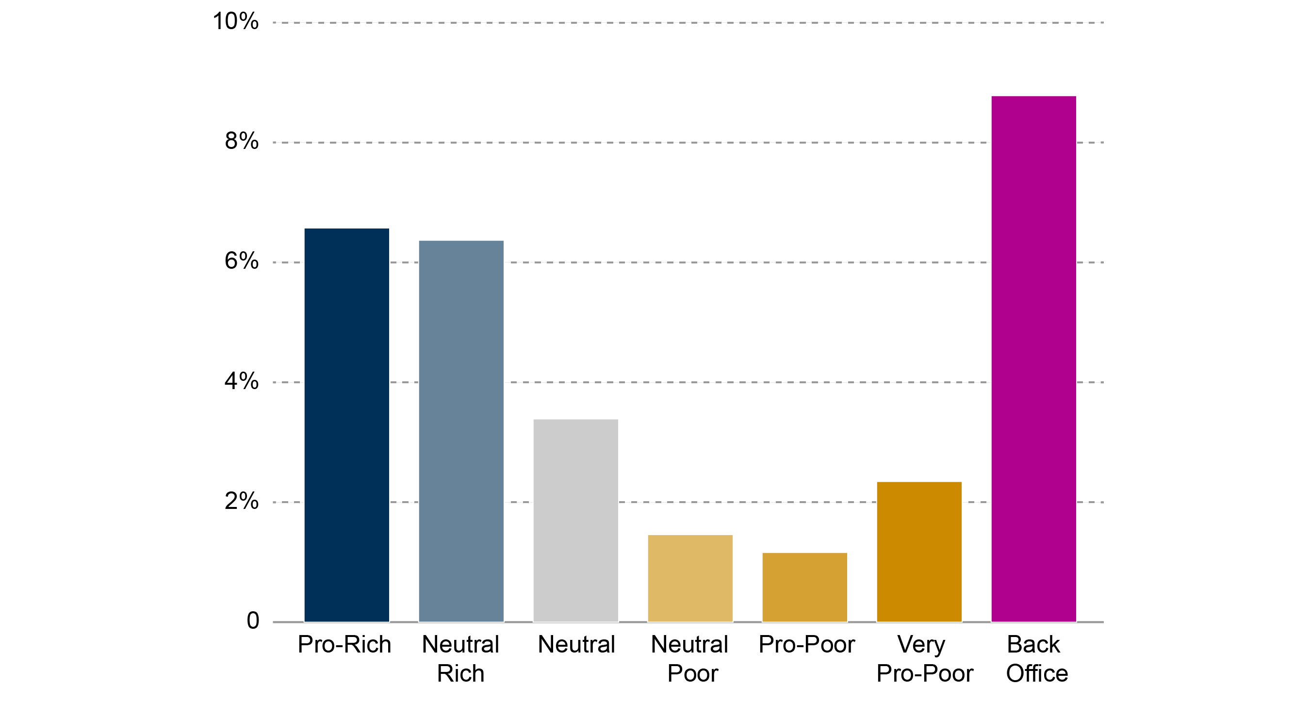 Eleven percent of spending is on Neutral services and only 2% of expenditure is on Pro-Rich services.