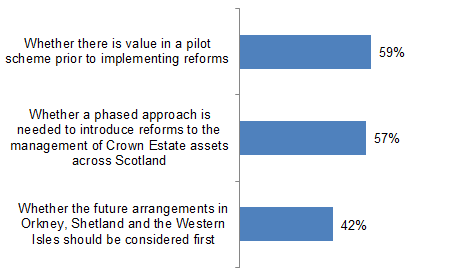 The preliminary findings from the consultation responses suggest that there was support for a number of proposals in the consultation paper. There was support amongst respondents for a phased approach to introduce reforms to the management of Scottish assets, for the ability for decisions on future management of the assets to take account of wider socio-economic and environmental objectives as well as commercial considerations, and for a national framework to govern opportunities for devolution of management to the local level. Scottish Ministers will consider the consultation responses and take those into account as the proposals for future legislation are developed.