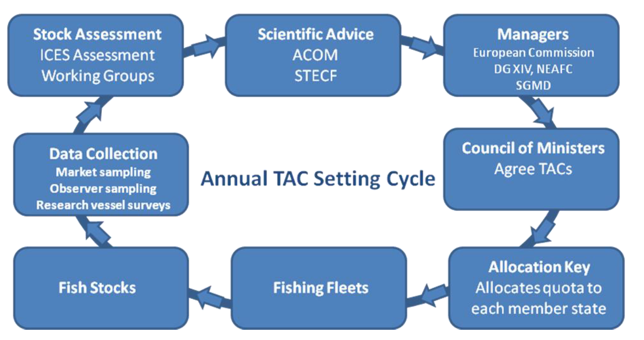 TACs are set on an annual cycle shown in the figure below. The ICES approach for assessing fish stocks is explained later in this briefing.