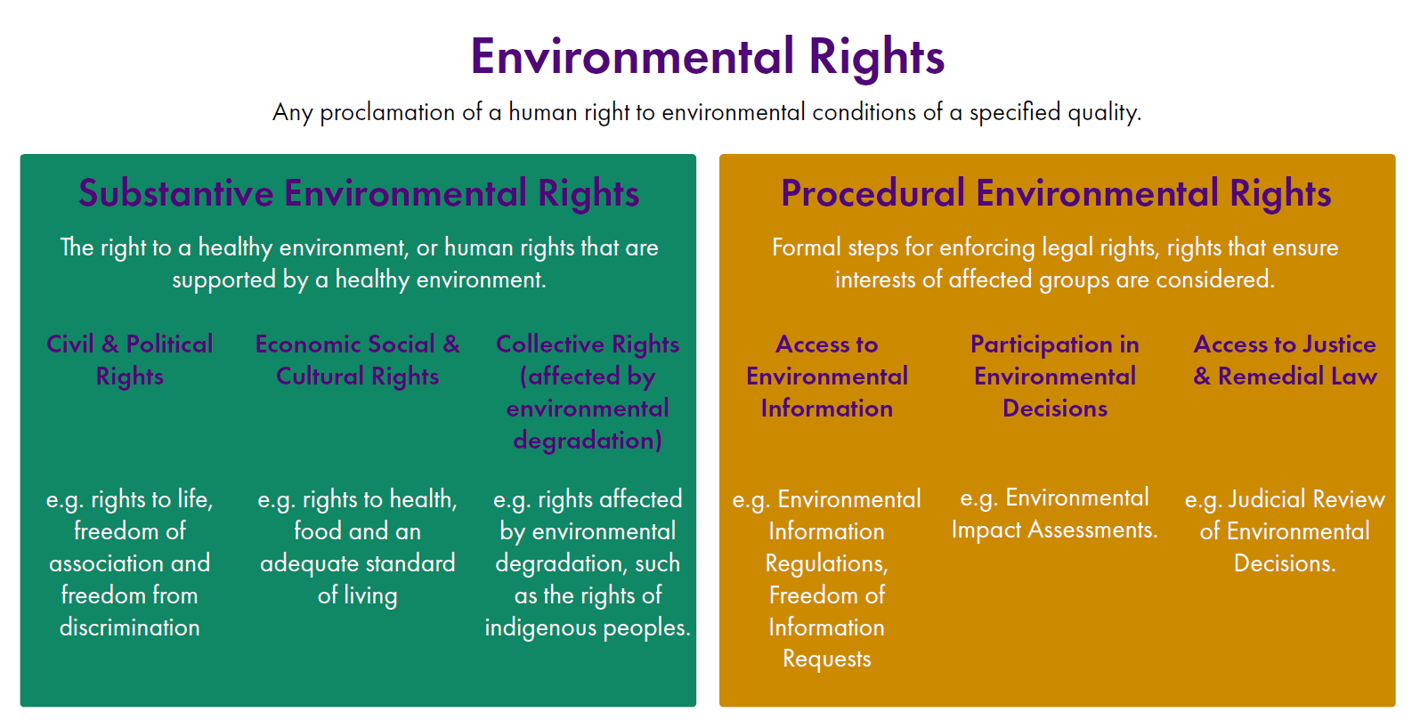 Environmental rights can be broadly categorised into substantive and procedural and rights: