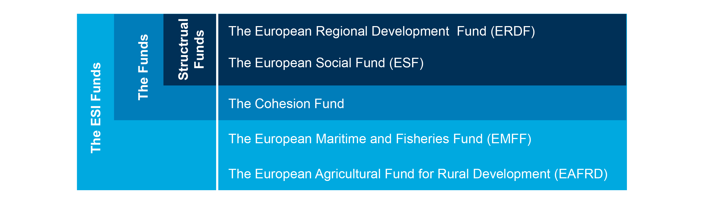 European Structural and Investment (ESI) Funds - this is a family of five funds pre-allocated to Member States and governed by an overarching set of rules. The scope of the ESI funds is broader than just Cohesion policy - it includes rural development and fisheries funds. The Structural Funds which contribute to EU Cohesion policy in Scotland are a sub-set of these ESI funds - see Figure 2.