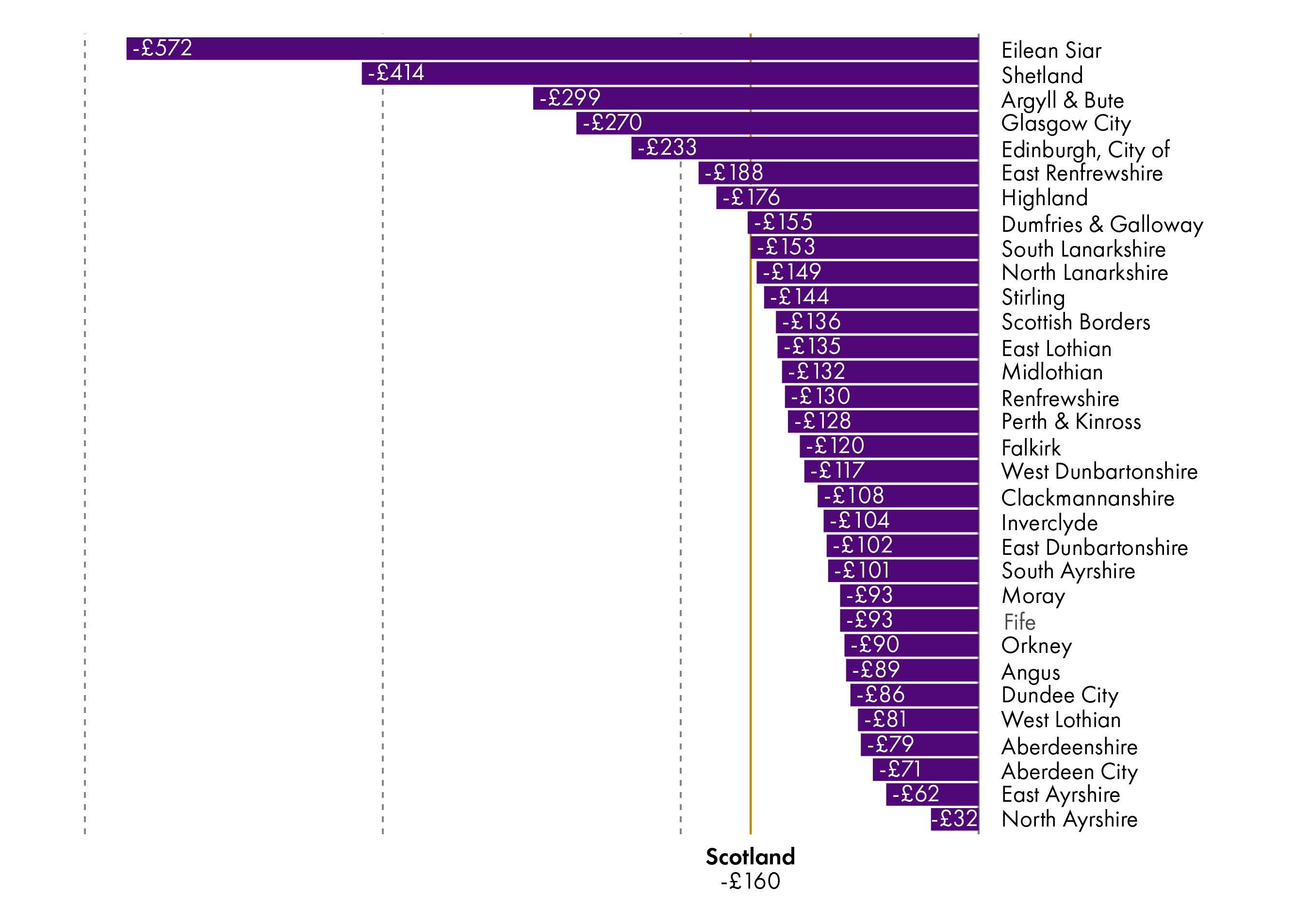 The greatest reduction in real terms revenue funding per head between 2013-14 and 2019-20 has been for Eilean Siar, at £572. The greatest reduction in real terms revenue funding per head between 2013-14 and 2019-20 for a wholly mainland authority has been for Glasgow City, which has seen its funding per head reduce by £270.
