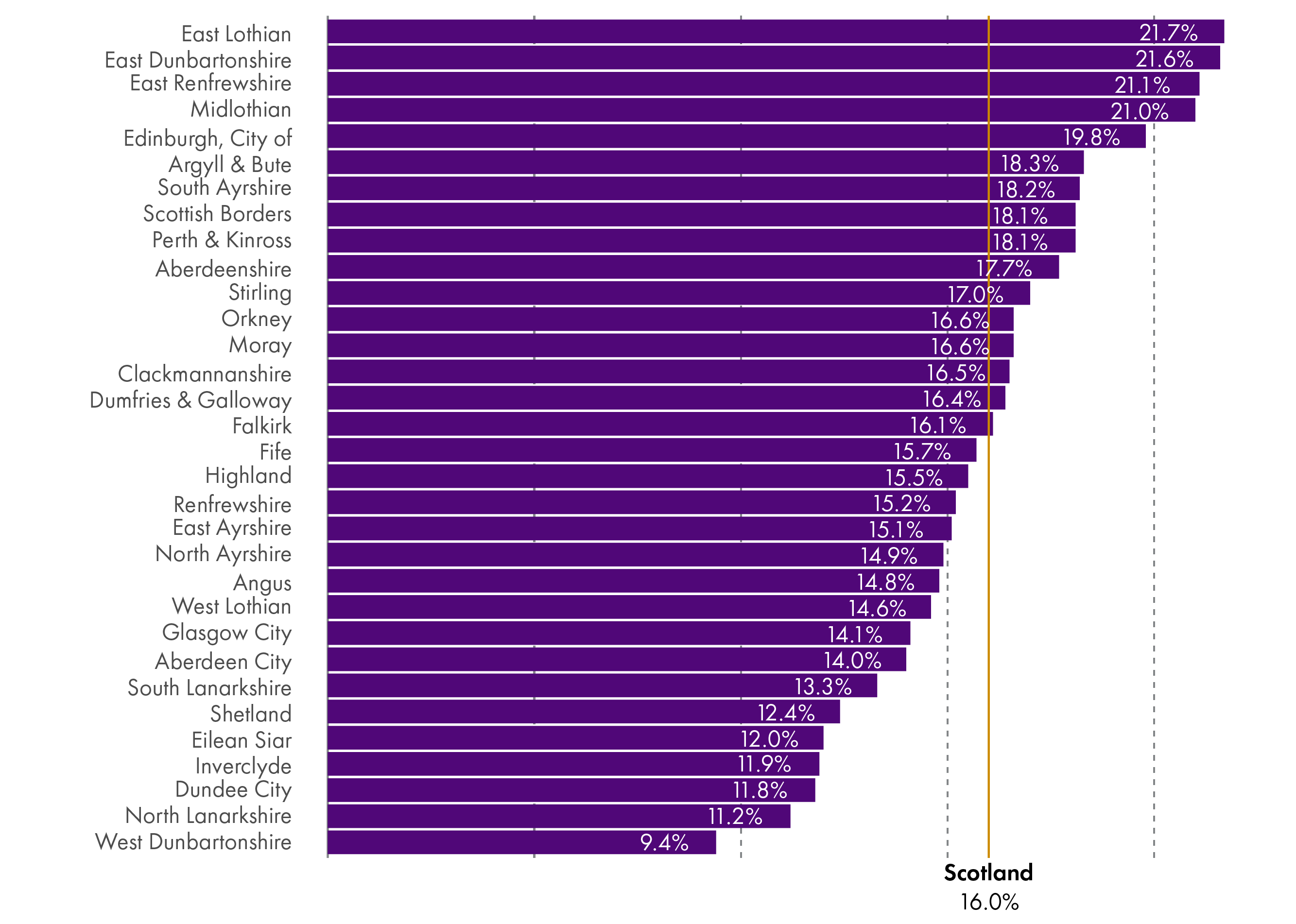 | East Dunbartonshire | 54.7 | 66.6 | 11.8 | 21.6% |