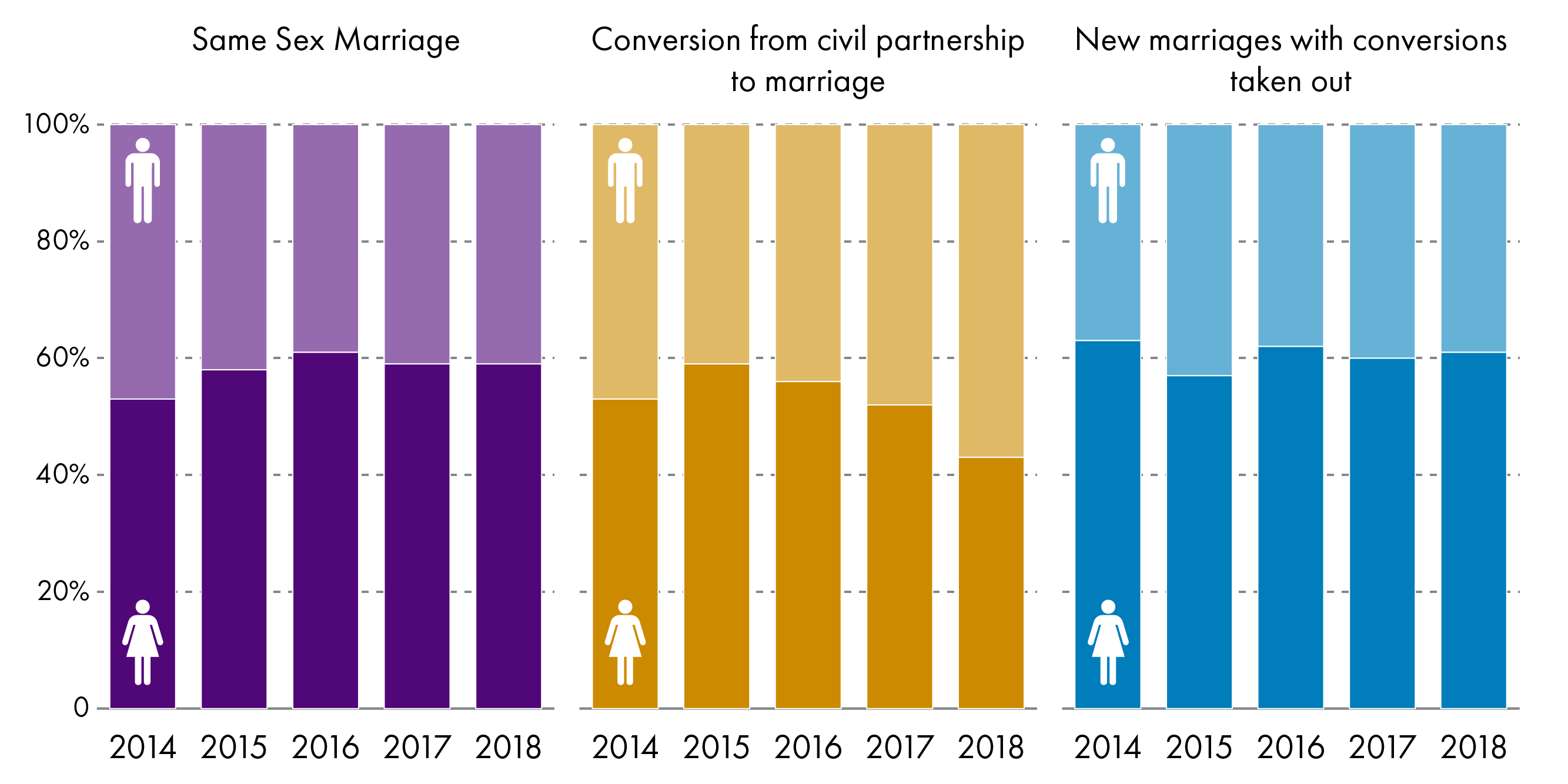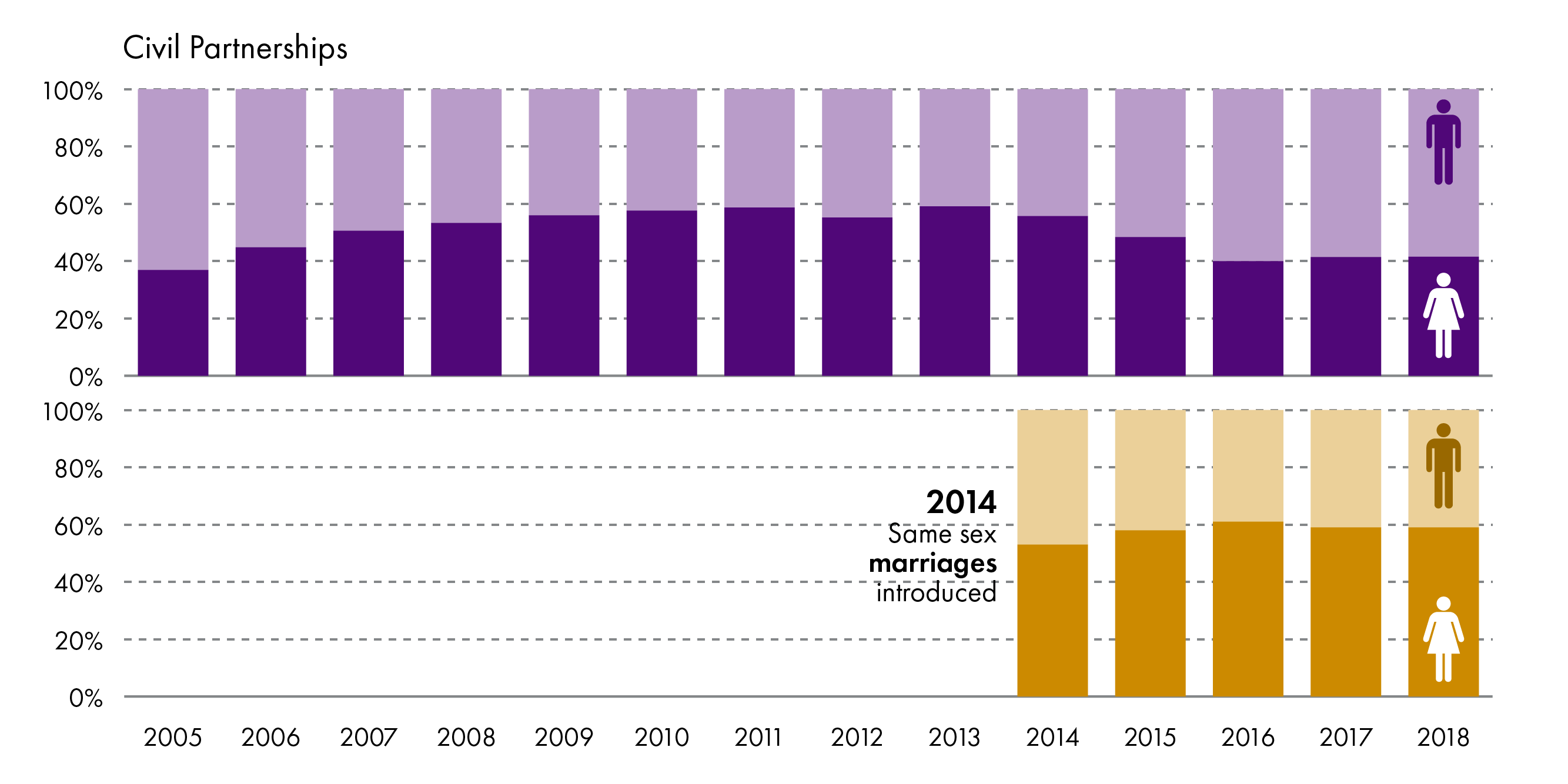 | Year | Civil Partnerships | Same sex marriages |
