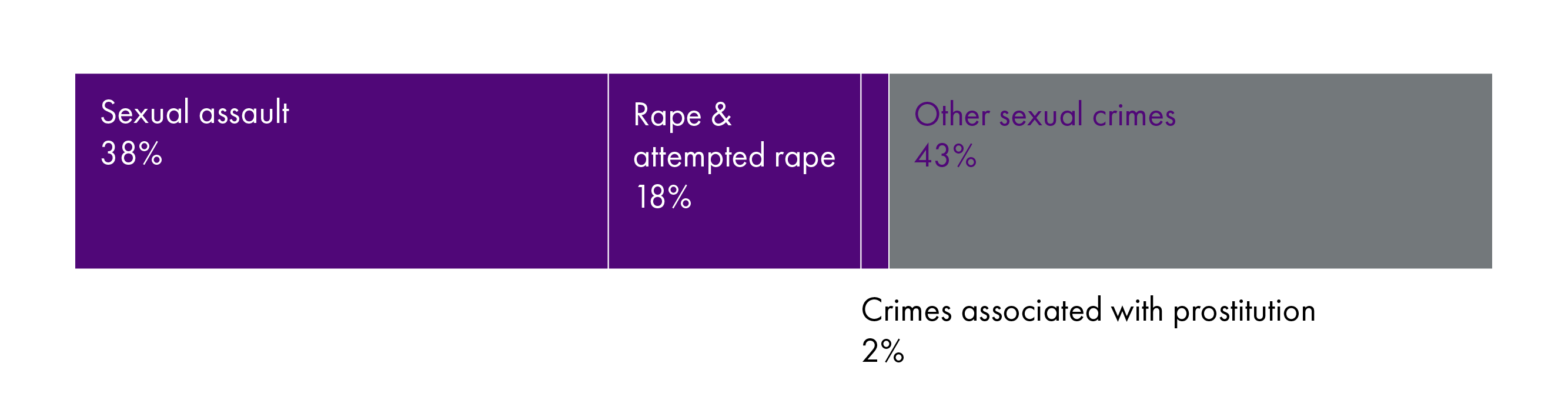 Official police figures should be viewed with caution as it is widely accepted that many sexual offences are not reported to police. The Scottish Crime and Justice Survey (SCJS) 2017-18 reported that only 23% of respondents reported the most recent (or only) incident of forced sexual intercourse to the police3.