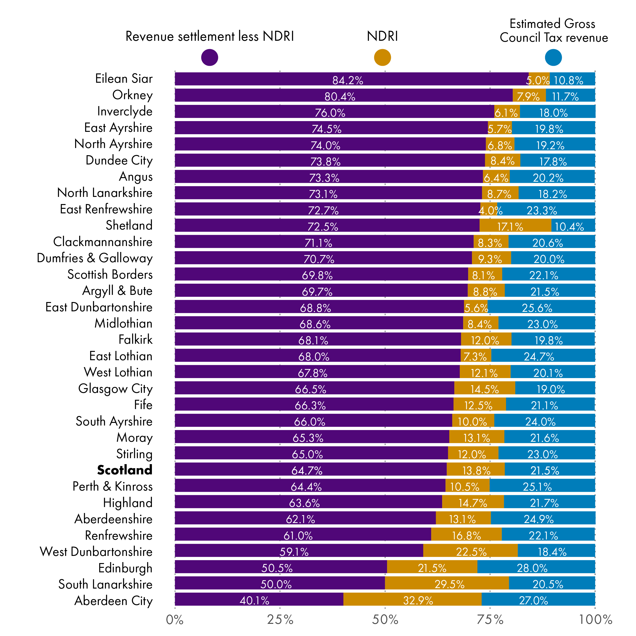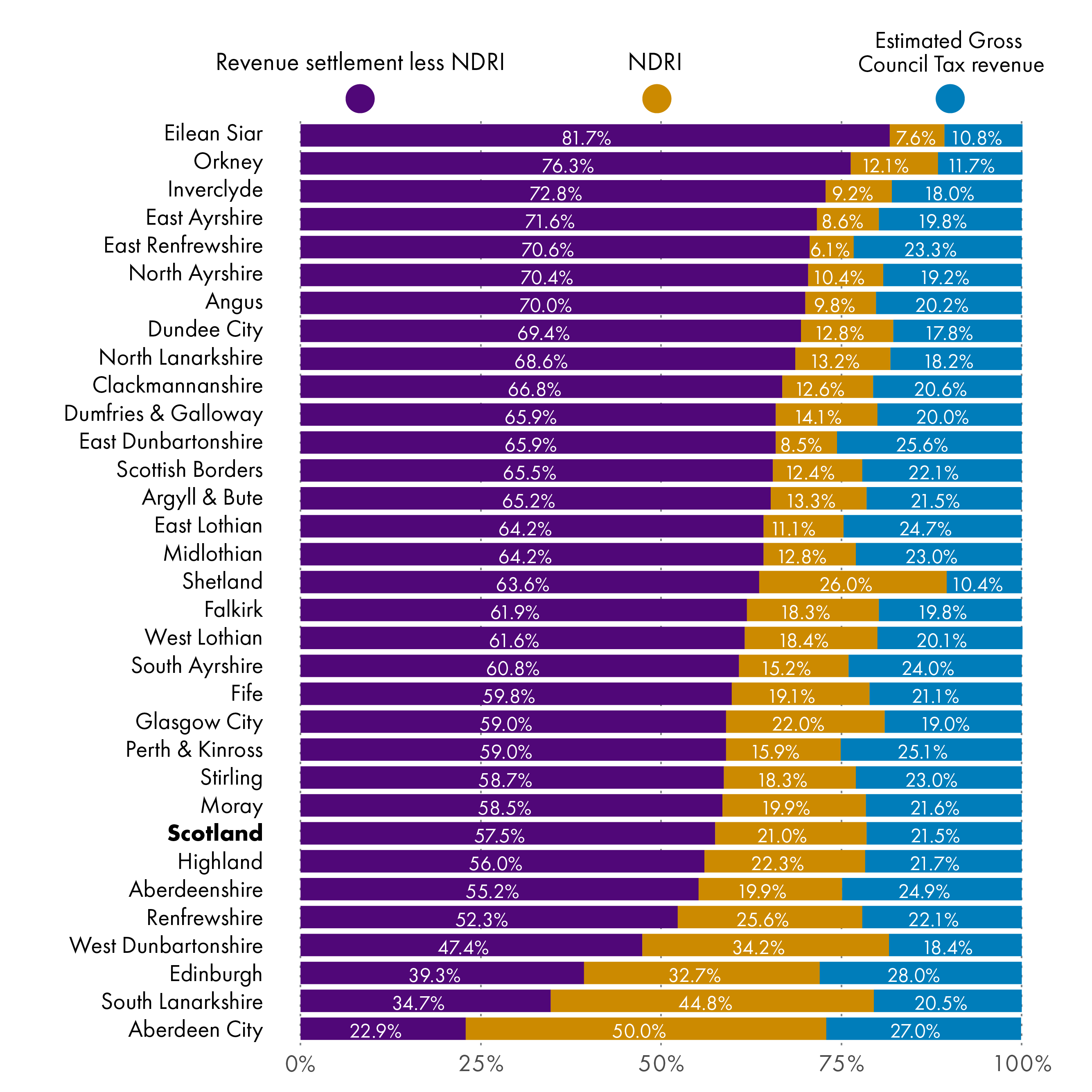 Before the total revenue settlement amounts to local authorities had altered as a result of additional COVID-19 funding, the structure of these settlements had changed. This reflects a marked reduction in Non-Domestic Rates Income following the Scottish Government's decision to offer a package of business rates reliefs. These changes help to demonstrate how the local government funding formula flexes to accommodate different circumstances.