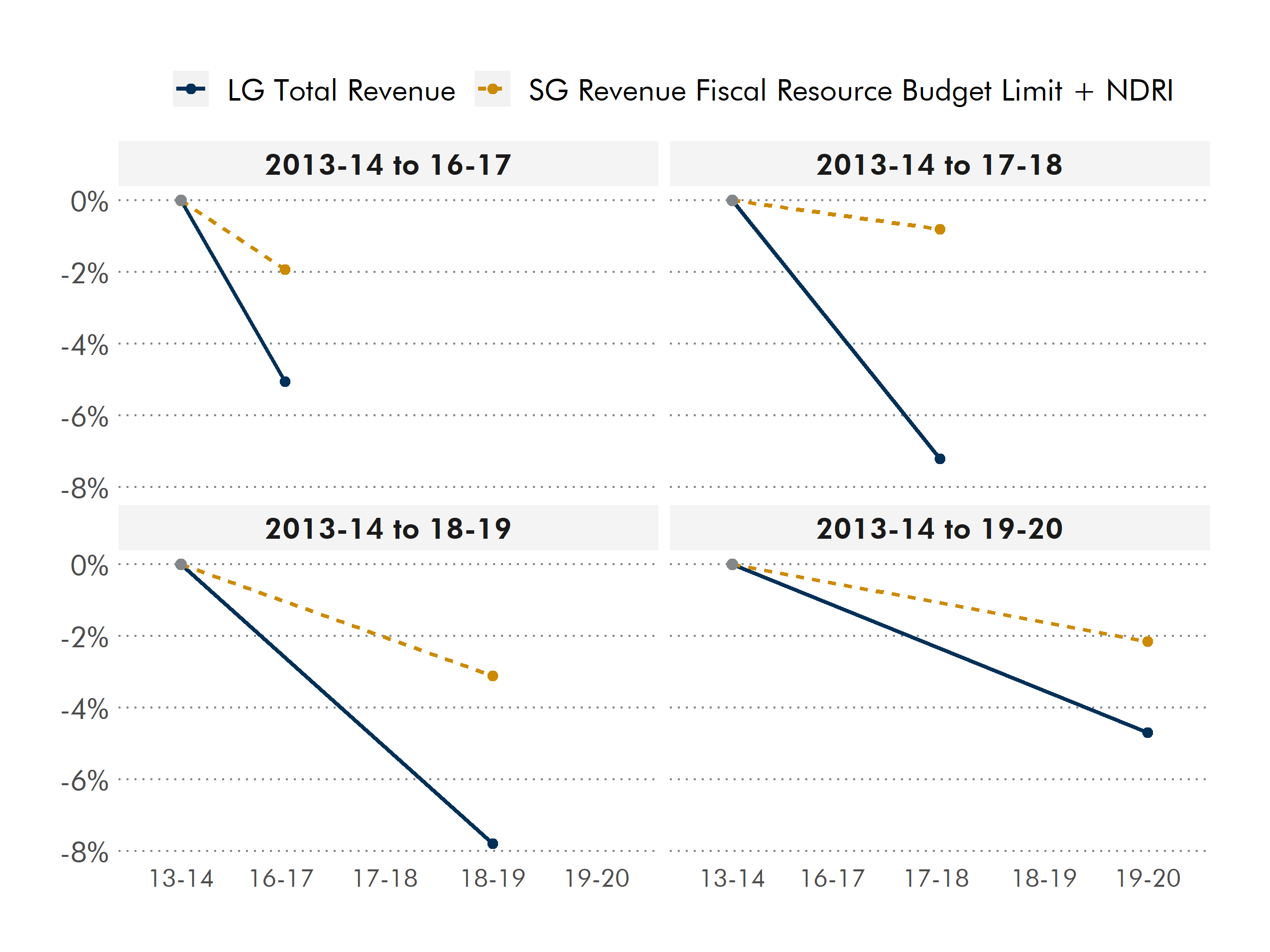 In order to give a full picture of the trends, this data looks at the real terms change in revenue funding for both the Scottish Government and local government from 2013-14 to each subsequent year that we have outturn data available for.