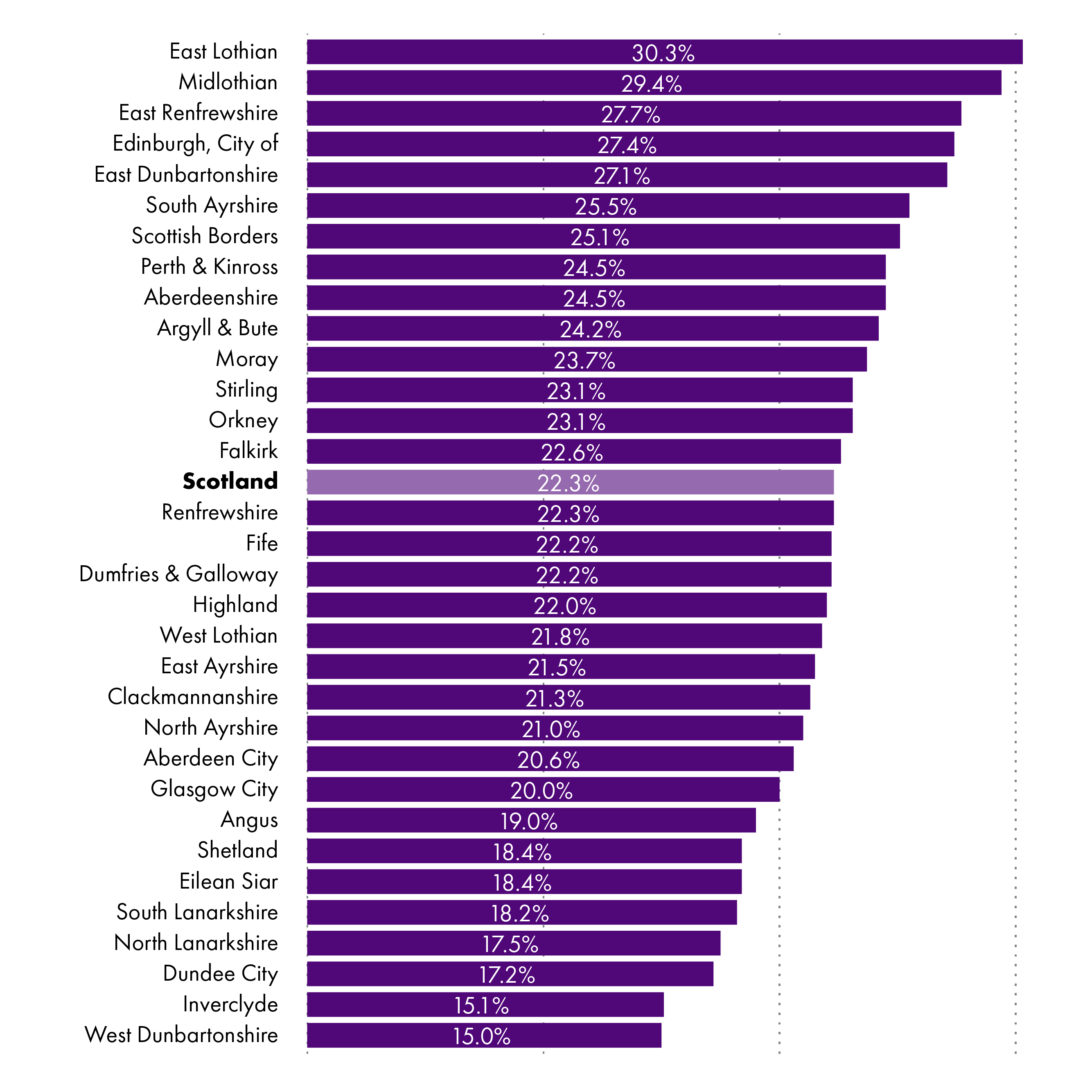| East Lothian | 47.6 | 62.06 | 14.4 | 30.3% |